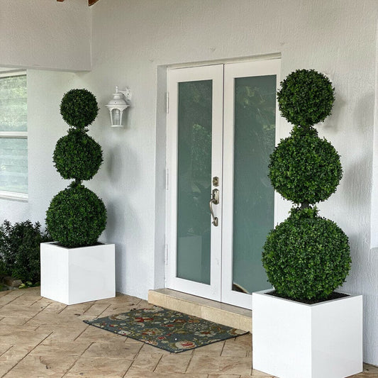 Triple Ball Topiary with Large Block Fiberglass Planter