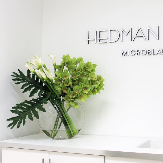 Modern Glass Plant Pot "Modern Home" 122 cm with Red Cymbidiums