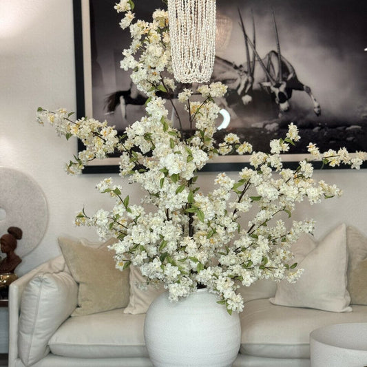 Matte White St. Tropez Vase with Personalized Pink Cherry Blossoms